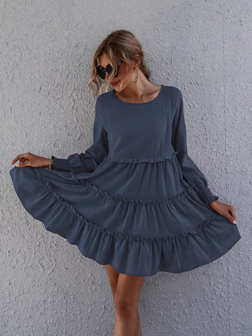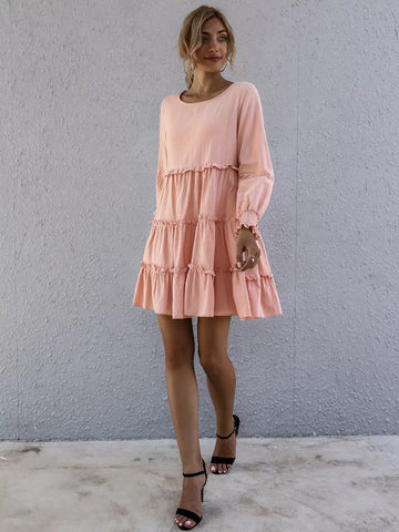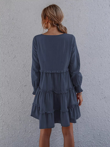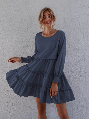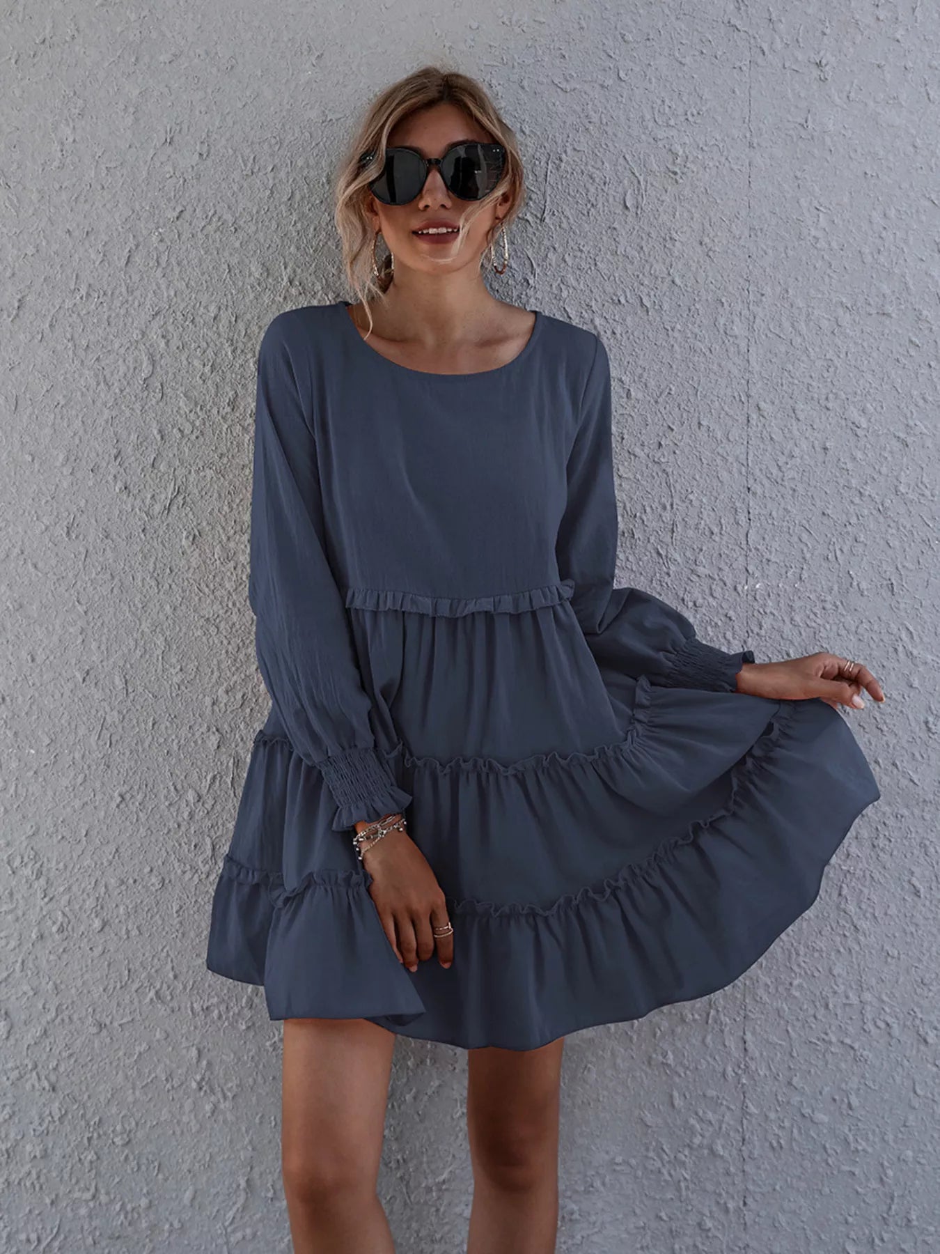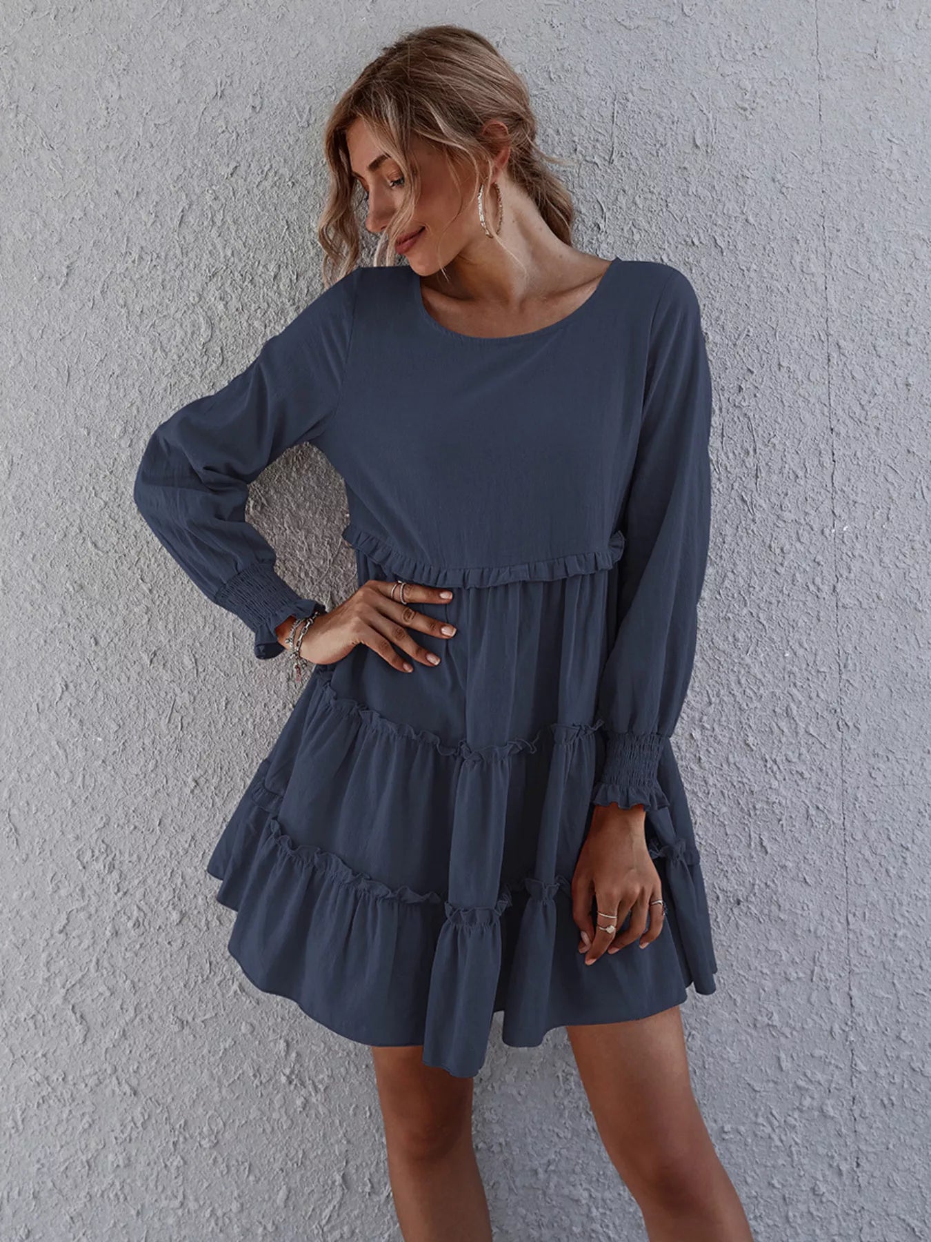 Ruffle Tiered Long Sleeve Mini Dress En solde
