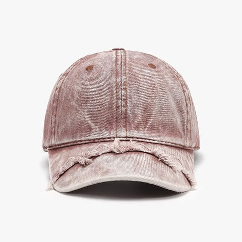Fringe Adjustable Cotton Baseball Cap - Tan / One Size