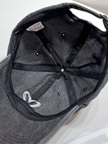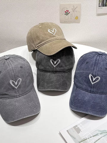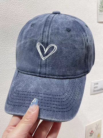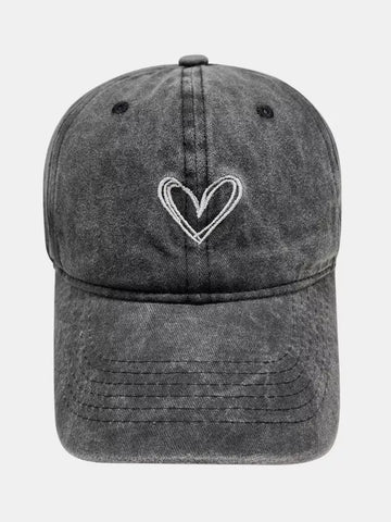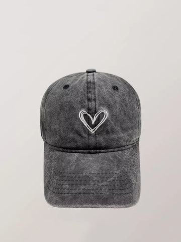 Washed Heart Embroidered Baseball Cap - Black / One Size