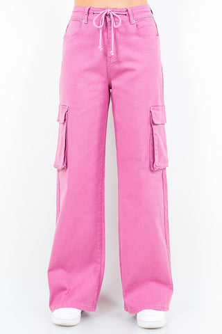 Drawstring Wide Leg Cargo Pants are a comfortable and stylish option for a casual and utilitarian look. These pants feature a drawstring closure at the waist, allowing for adjustable fit and added comfort. The wide leg silhouette offers a relaxed and trendy style that is both flattering and easy to wear. The cargo pockets add a touch of functionality and a nod to the classic military-inspired design. These pants are versatile and can be dressed up or down, making them a versatile wardrobe essential for a casual and laid-back vibe.
