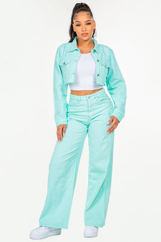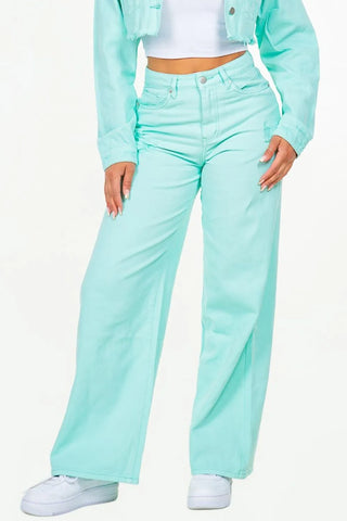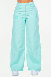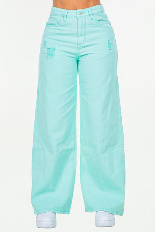 American Bazi High Waist Distressed Wide Leg Jeans - Mint Blue / 1