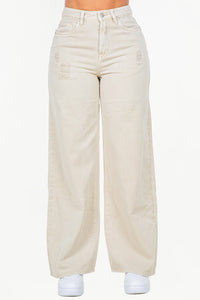 High Waist Distressed Wide Leg Jeans are a fashion-forward choice for those looking to add a trendy edge to their wardrobe. The high waist design sits above the natural waistline, providing a flattering and slimming effect on the midsection. The wide leg silhouette offers a relaxed and comfortable fit, perfect for creating a stylish and effortlessly chic look. The distressed detailing adds a touch of edginess and a lived-in feel to the jeans, enhancing their casual and cool vibe. These jeans are versatile and can be paired with various tops and footwear for a range of stylish outfits.
