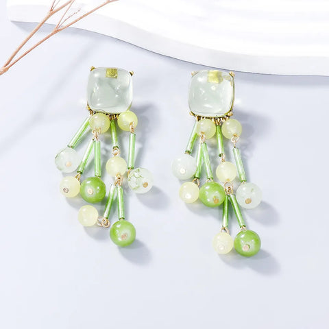 Acrylic Bead Dangle Earrings - Gum Leaf / One Size