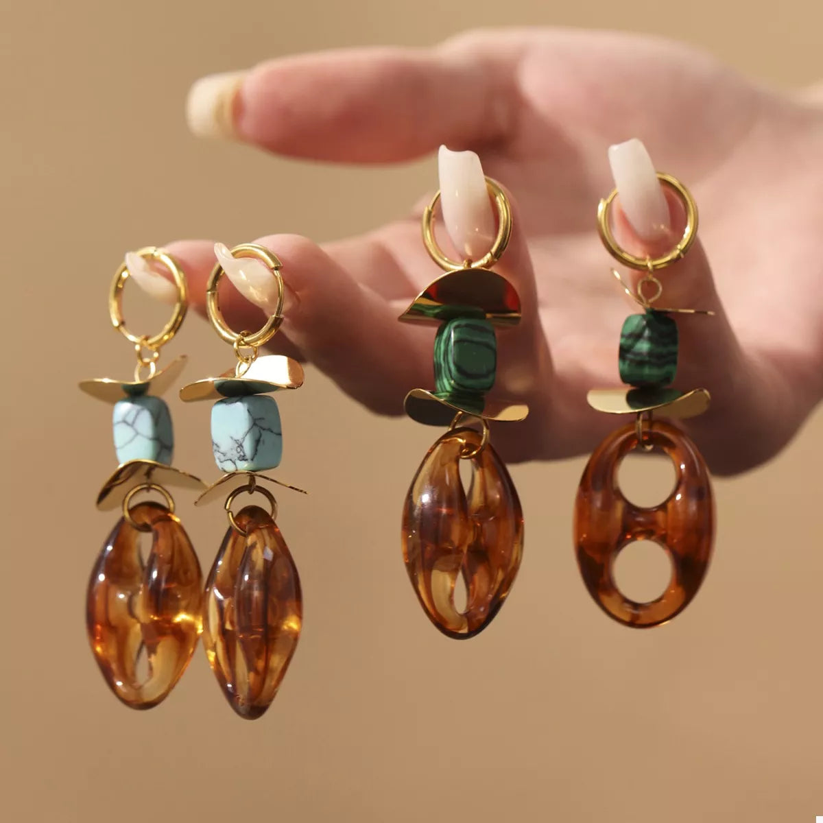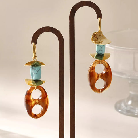 - Material:18K Gold-Plated,Resin,Stainless Steel,Turquoise