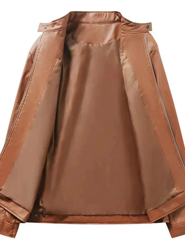 Men's Full Size Zip Up Long Sleeve Jacket Plus Size - Brown / S