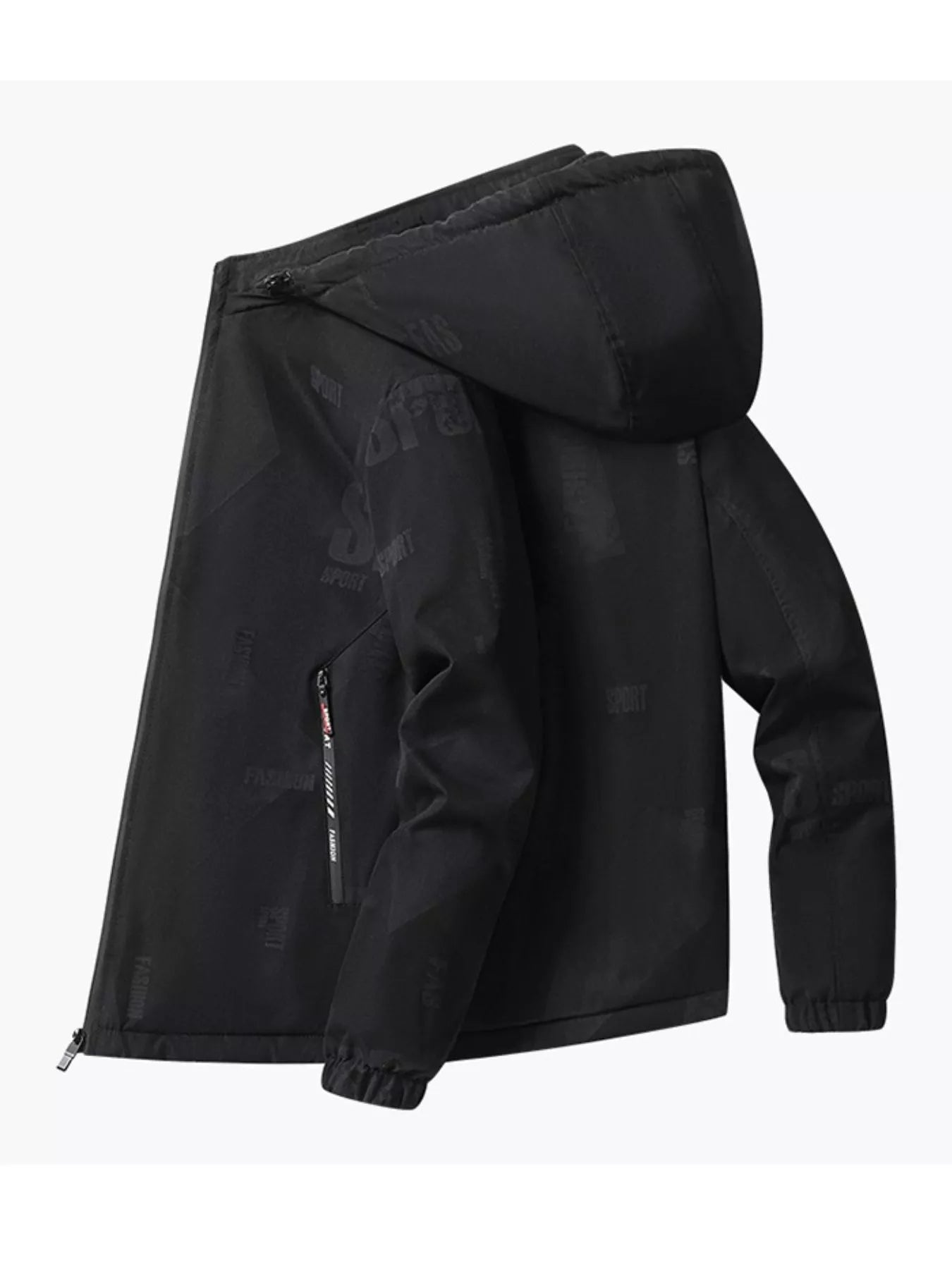 Men's Plus Size Zip Up Long Sleeve Hooded Jacket - Black / M