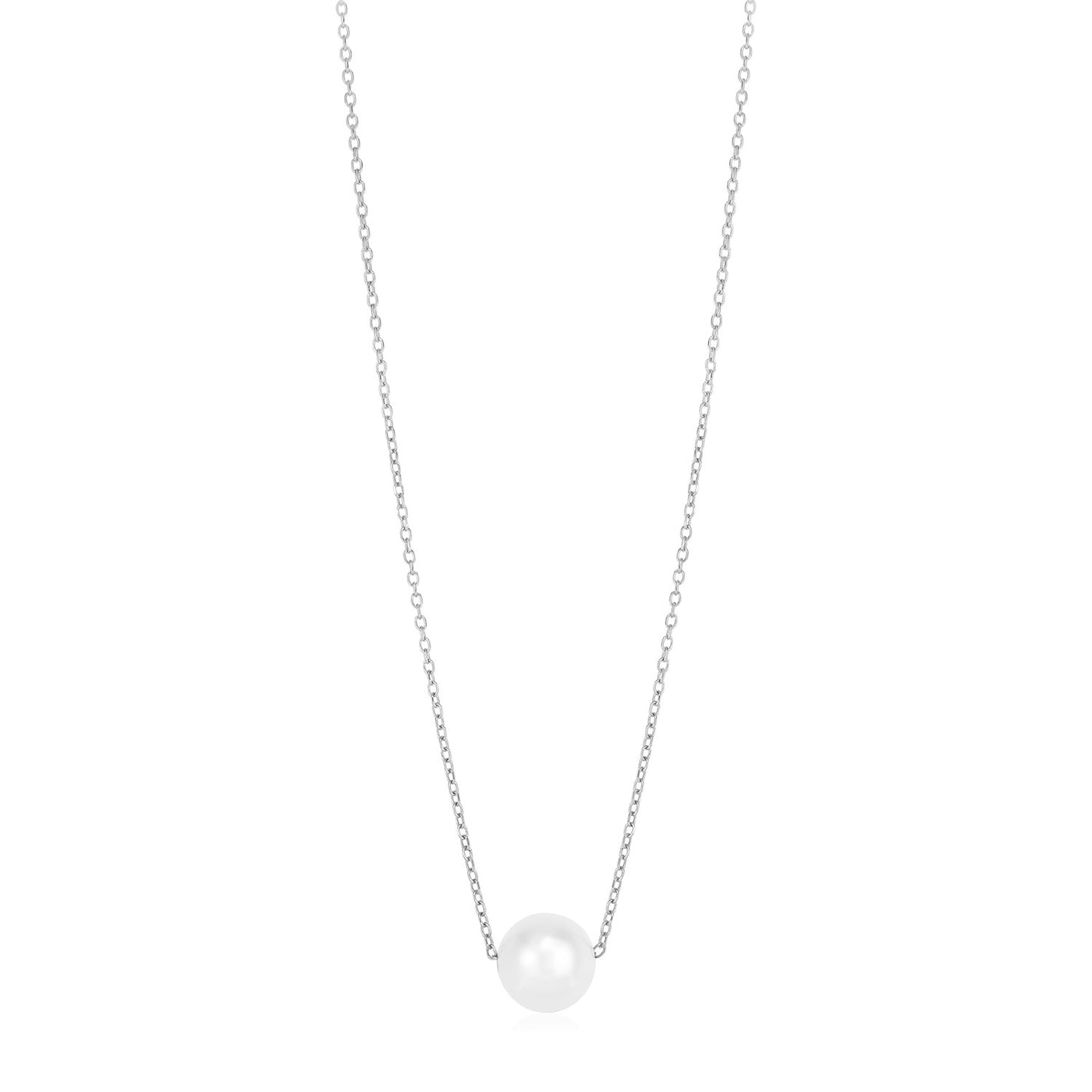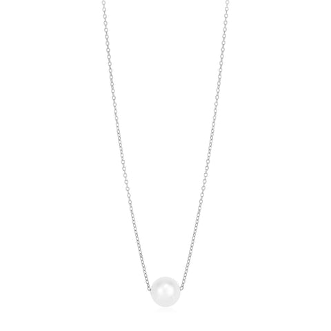 14k White Gold Pearl Solitaire Necklace - 18'' / White Gold