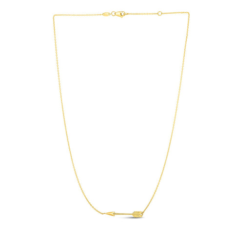 A beautifully crafted arrow in a horizontal orientation showcases the charming style of this chain necklace. Made of 14k yellow gold, this measures 18 inches and secured with a lobster clasp.