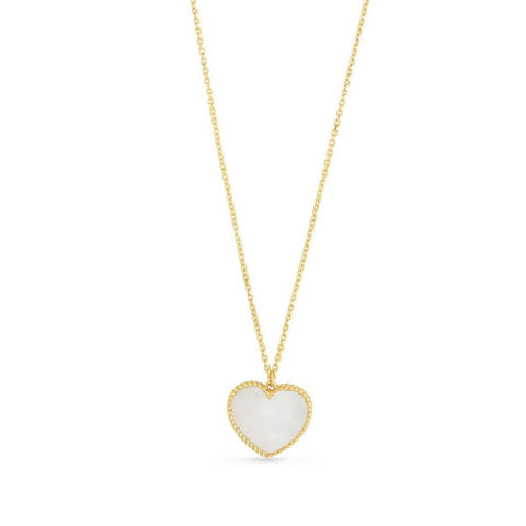 14k Yellow Gold High Polish Heart Pearl Paste Necklace En solde