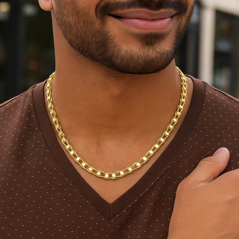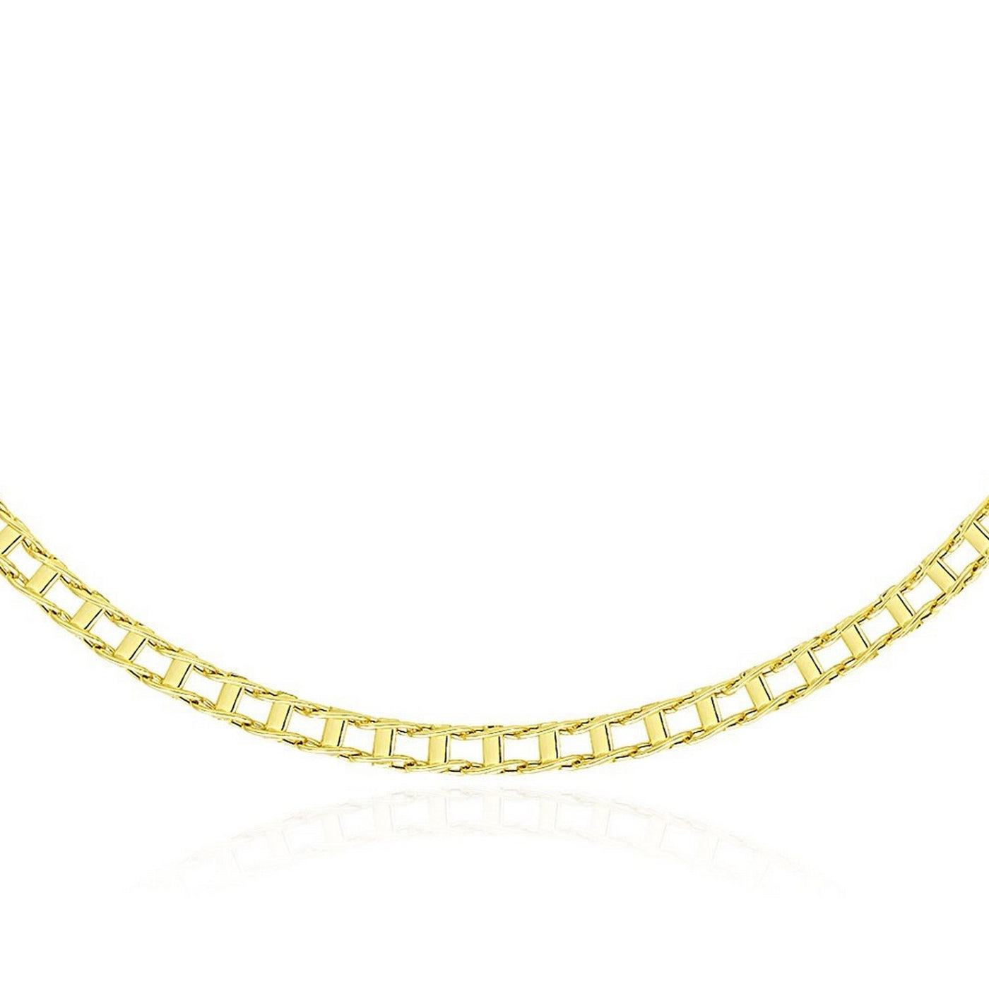Rail themed links with twisted border sections highlight the classic elegance of this men's chain necklace. Made of 14k yellow gold, this measures 20 inches and secured with a lobster clasp.