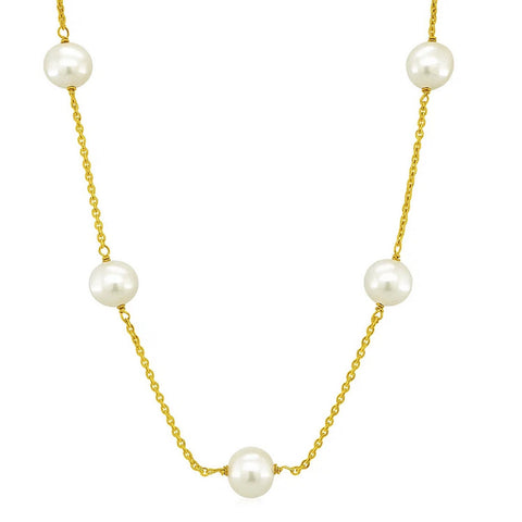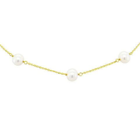 14k Yellow Gold Necklace with White Pearls - 16'' / Yellow Gold