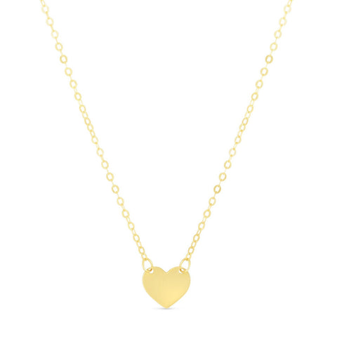 A classically simple polished heart hangs beautifully from fine chain in this exquisite 14k yellow gold necklace. Necklace is 18 inches long.