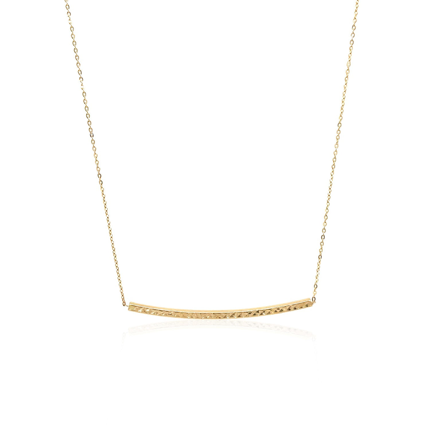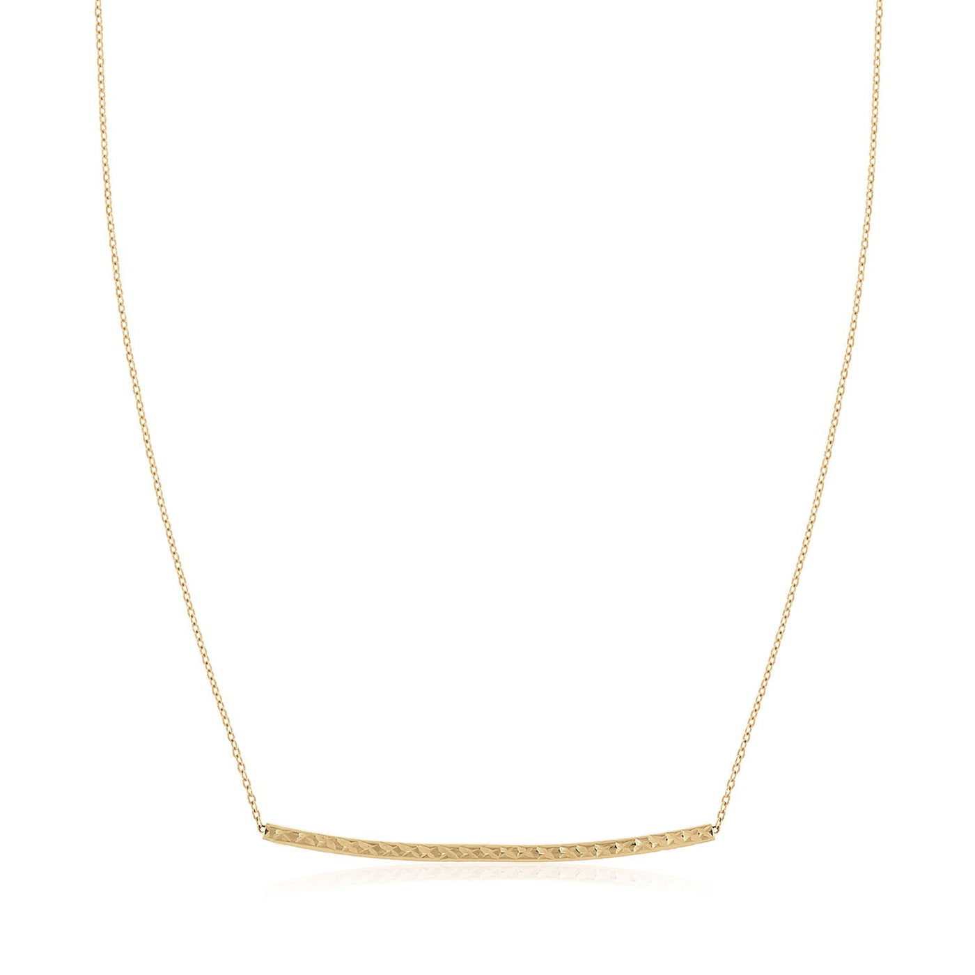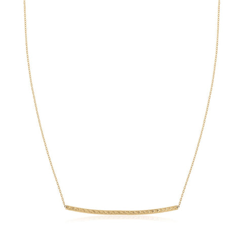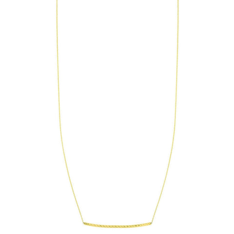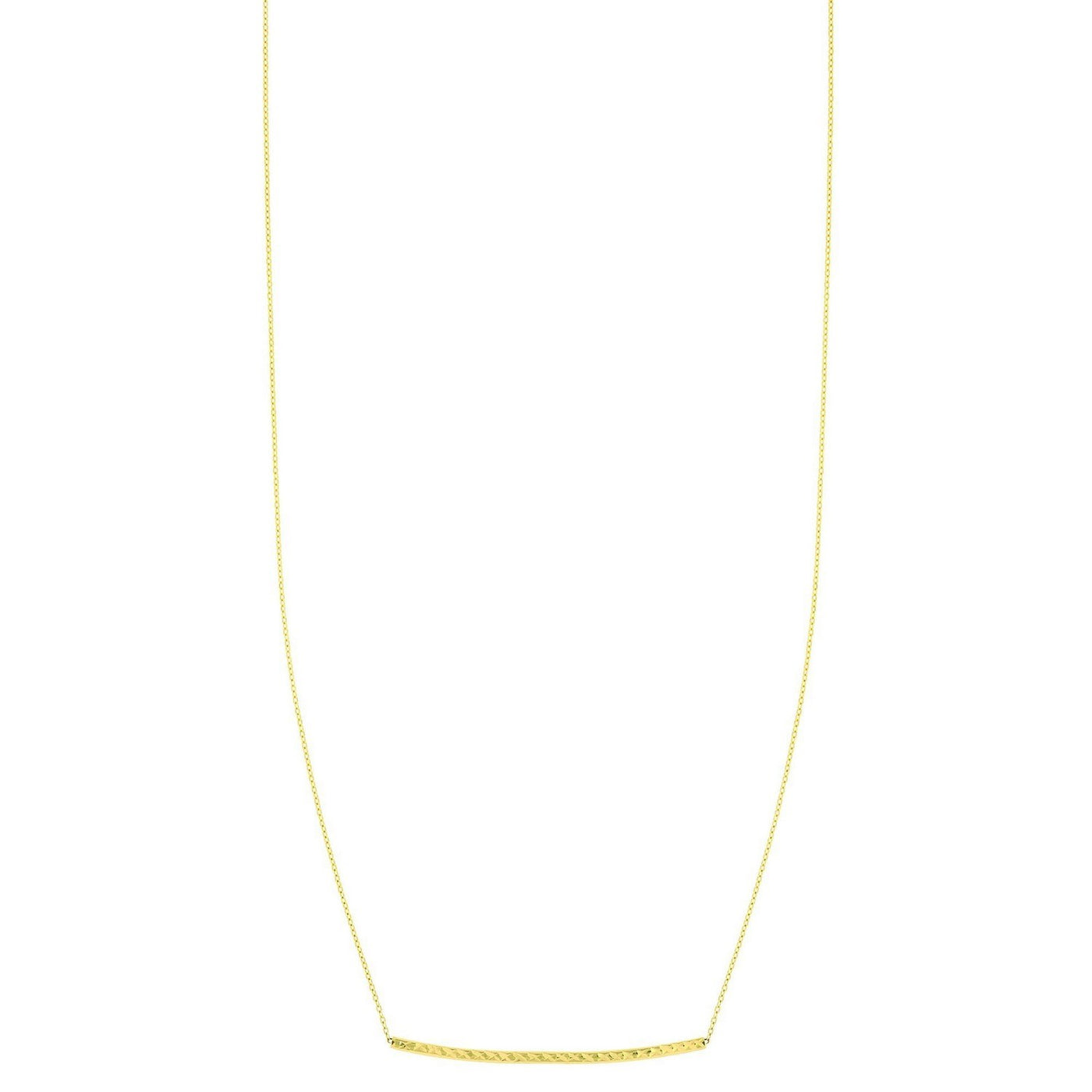 Wonderfully mesmerizing, this chain necklace features a thin front bar with exquisite diamond-cut detailing. Made of 14k yellow gold and measures 17 inches.