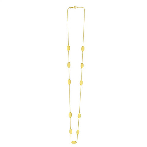 Elevate your style with this 14k yellow gold elongated hexagon link necklace. Showcasing a striking arrangement of stationed hexagon segments, this piece beautifully balances geometry with understated simplicity. Its radiant finish enhances the bold design, while the 30 inches length adds a graceful, elongated silhouette for effortless versatility—a perfect choice for those who appreciate jewelry with a geometric edge. Secured with a lobster clasp closure.