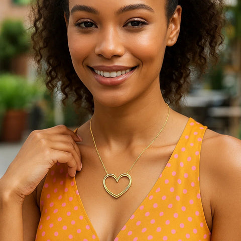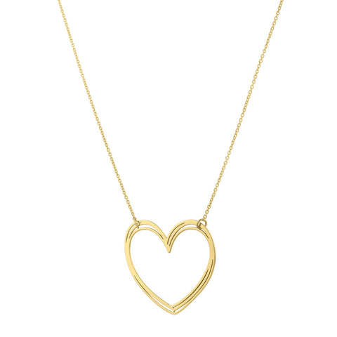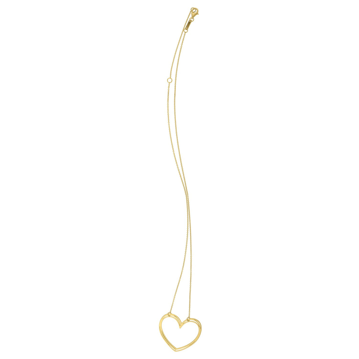 Capture the essence of romance with this 14k yellow gold large open heart necklace. Suspended at the center of an 18 inches chain, its light and delicate design showcases a polished heart with intricate openwork for an airy, romantic touch. Perfect for those who adore sweet yet sophisticated jewelry. Secured with a lobster clasp closure.