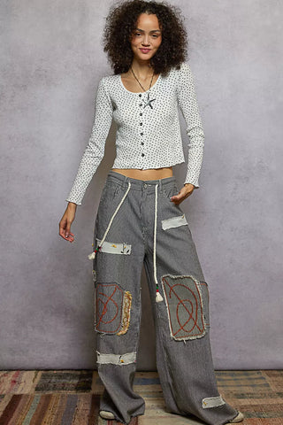 POL Button Down Polka Dot Ribbed Cardigan En solde