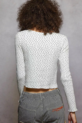 POL Button Down Polka Dot Ribbed Cardigan - OFF WHITE / S