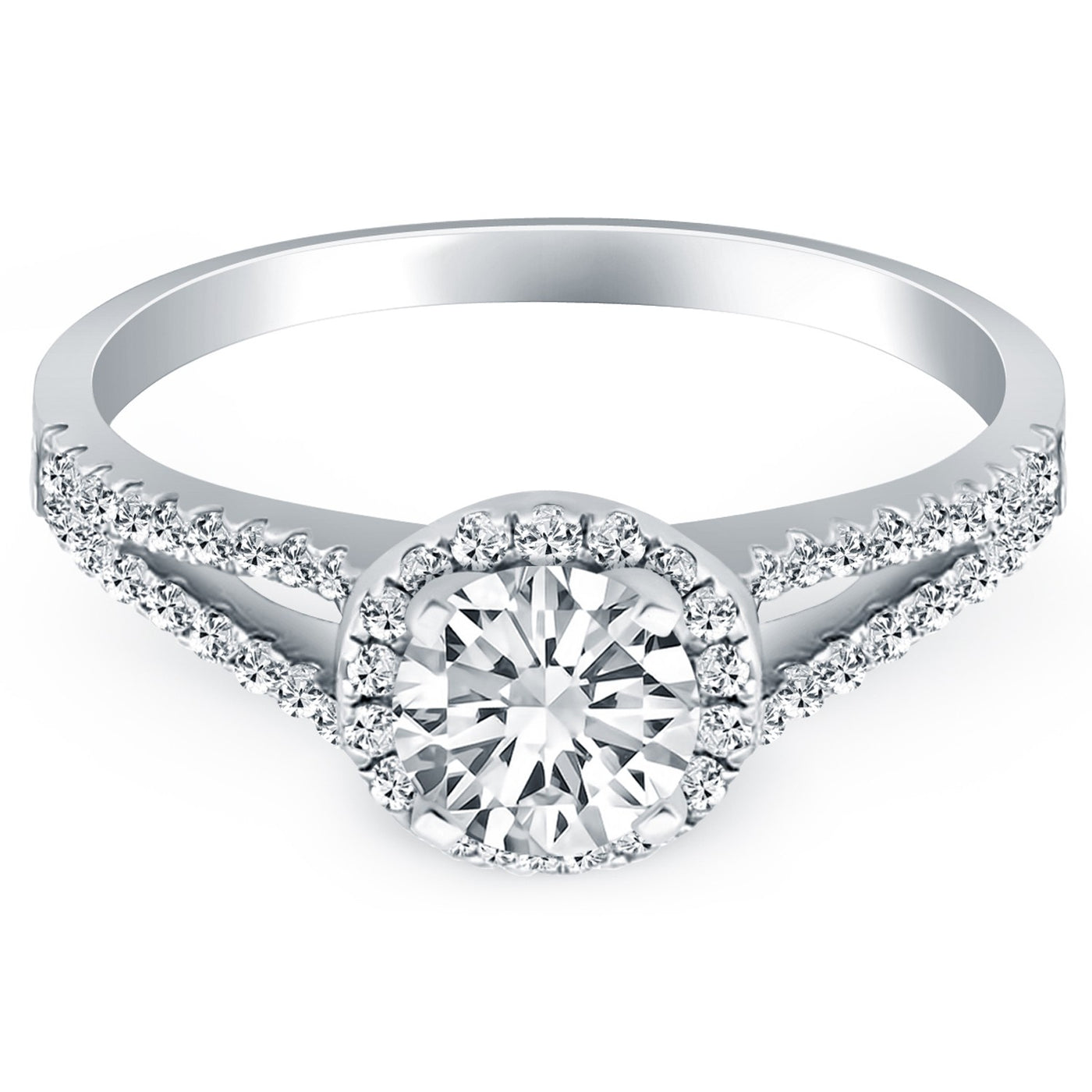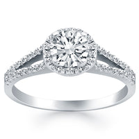 14k White Gold Diamond Halo Split Shank Engagement Ring - 4 / White Gold