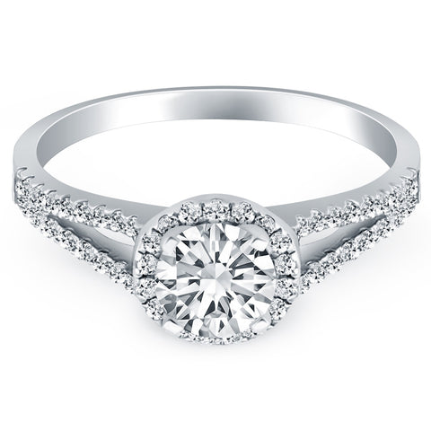 14k White Gold Diamond Halo Split Shank Engagement Ring En solde