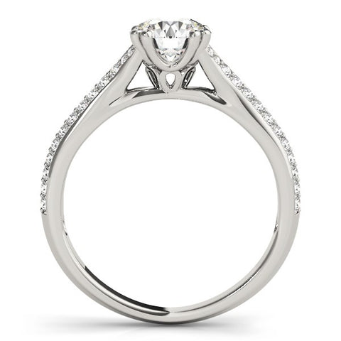 Classically elegant, this round diamond ring showcases double prong setting and beautifully set multirow shank stones. Made of 14k white gold.