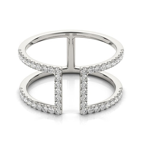 Wonderfully beguiling, this dual-band style ring showcases a parallel design and is pave set with brilliant diamonds. Crafted in fine 14k white gold.