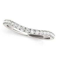 Showcasing, a graceful curved design this wedding band is pave set with brilliant round diamonds made of 14k white gold.