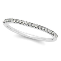 A Showcasing intricate scallop paves setting this wedding band features round upper section diamonds made of 14k white gold.