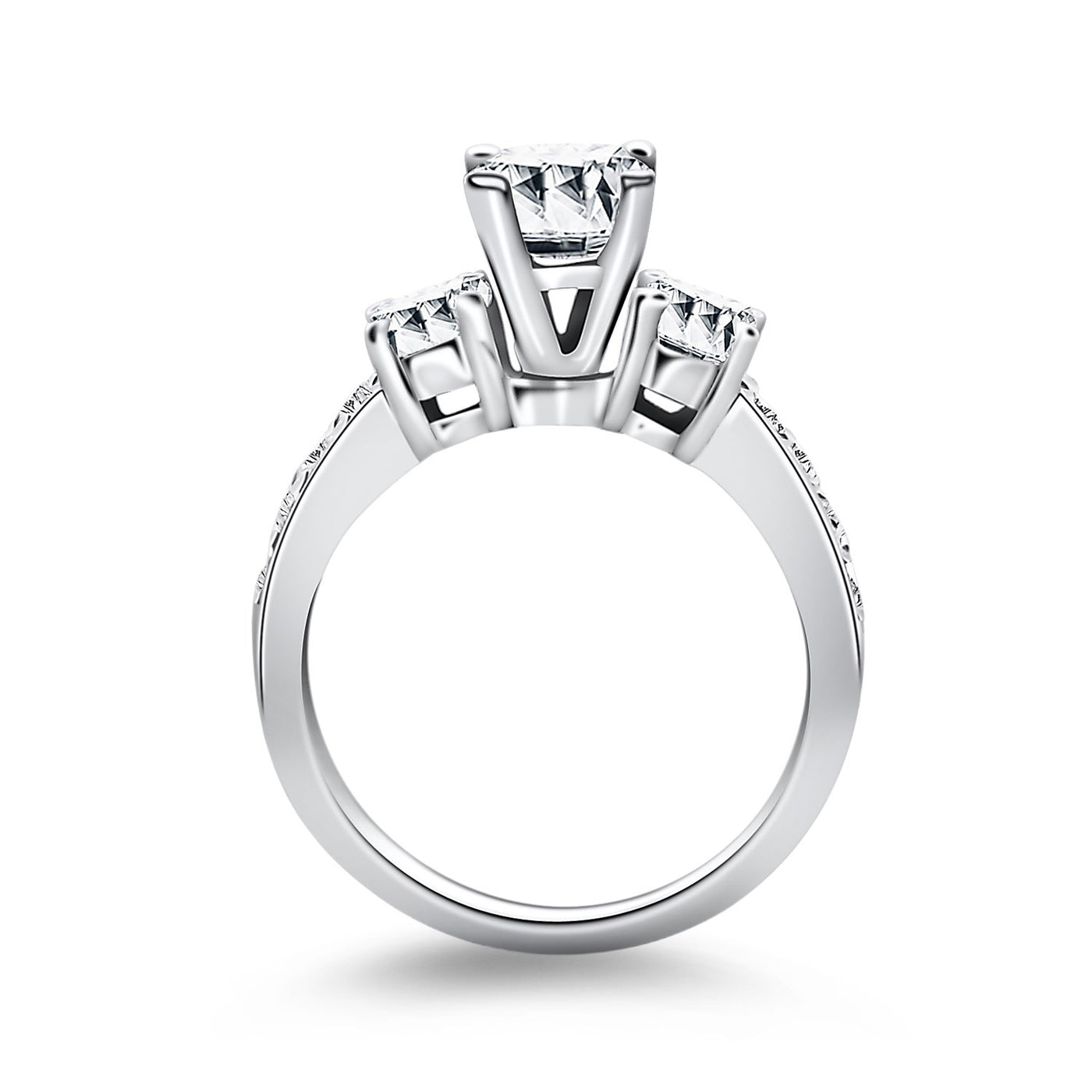 14k White Gold Three Stone Engagement Ring with Diamond Band - 4 / White Gold
