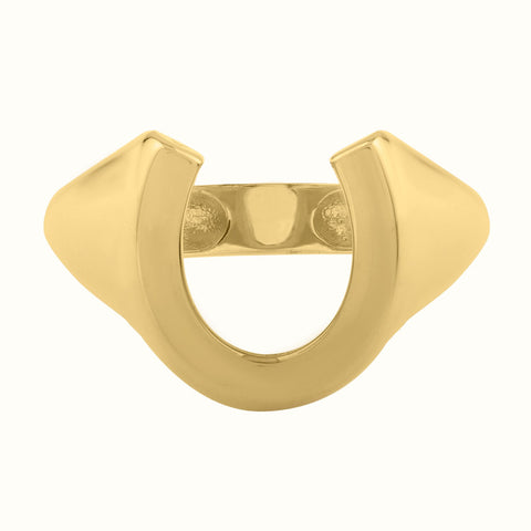 Symbolizing good luck and all things equestrian, this 14k yellow gold horseshoe ring offers a blend of meaning and style. The sleek design reflects the iconic horseshoe shape, long associated with fortune and protection. With its radiant finish, this ring is an ideal choice for horse enthusiasts or anyone drawn to motifs of luck.