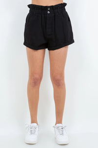 American Bazi High Waist Paper Bag Shorts - Black / S