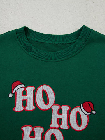Embroidered Letter Christmas Round Neck Sweatshirt En solde