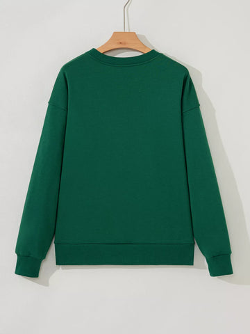 Embroidered Letter Christmas Round Neck Sweatshirt - Dark Green / S
