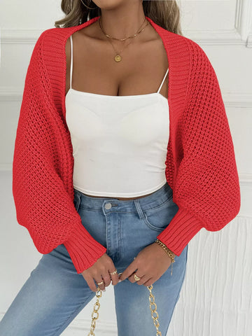 Open Front Batwing Sleeve Cardigan - Beige / One Size