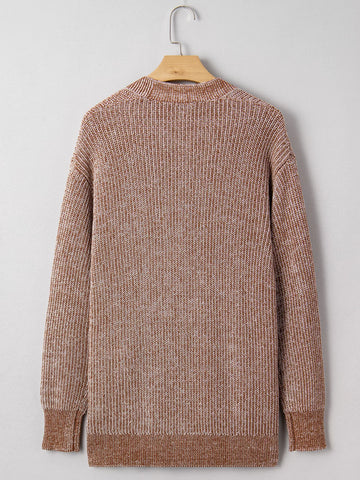 Open Front Dropped Shoulder Cardigan with Pockets - Camel / S