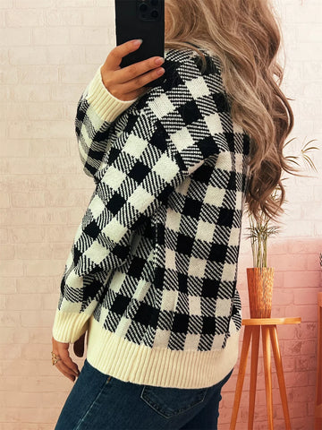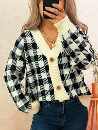 Plaid Button-Down Cardigan - Gray/white / One Size