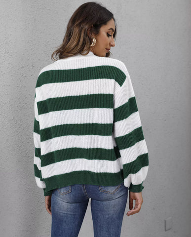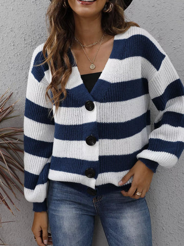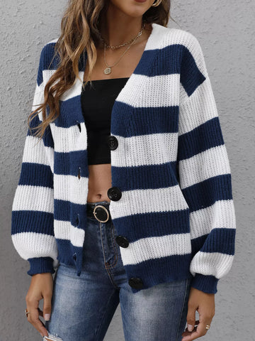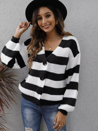 Striped Button-Up Long Sleeve Cardigan - Black / S