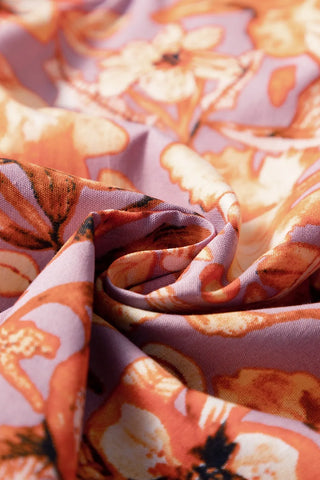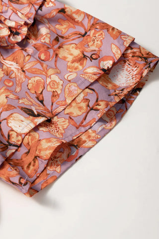 Floral Ruffled Layered Short Sleeve Tie Neck Blouse En solde