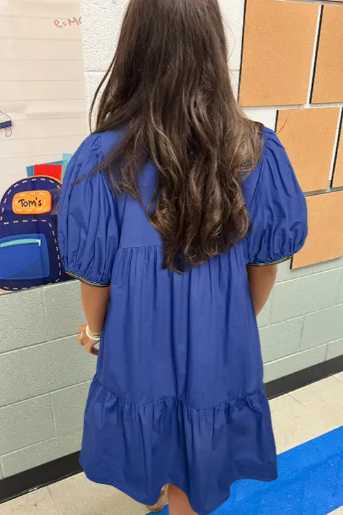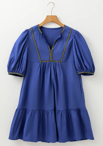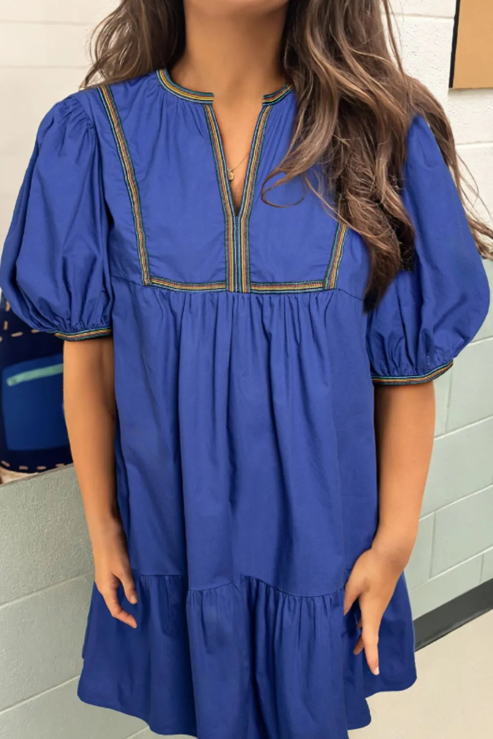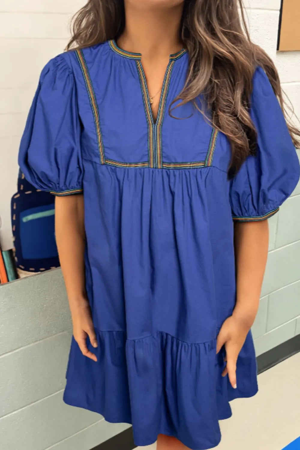 Inform when this item available: Notched Puff Sleeve Mini Dress - Royal Blue / S