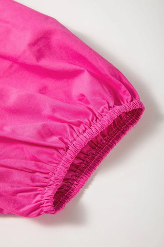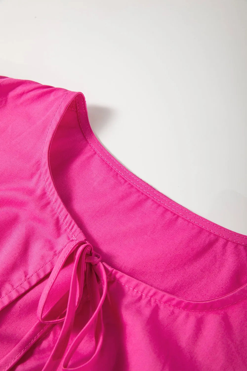 Puff Sleeve Tie Front High Waist Mini Dress - Hot Pink / S