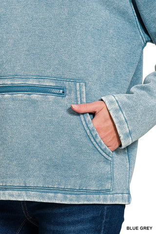 Stay cozy and stylish in this fleece washed high neck kangaroo pocket sweatshirt. The high neck provides extra warmth and a trendy touch to your outfit. Featuring a convenient kangaroo pocket, this sweatshirt is both practical and fashionable. The fleece washed fabric adds a soft and comfortable feel, perfect for lounging or casual outings. Elevate your casual wardrobe with this versatile and chic sweatshirt.