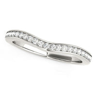 A Set of prong setting this round diamond wedding band is simply elegant a curved beauty made of 14k white gold.
