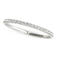 Radiating simplicity and allure, this wedding band features round pave set diamonds. Crafted in fine 14k white gold.
