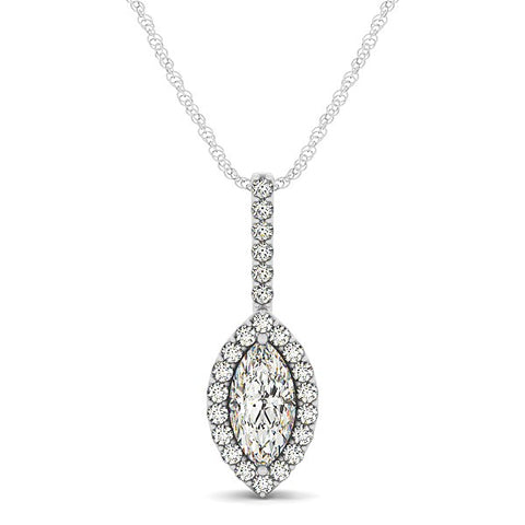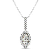 Marquis Shape Diamond Halo Pendant in 14k White Gold (2/3 cttw) - 18'' / White Gold