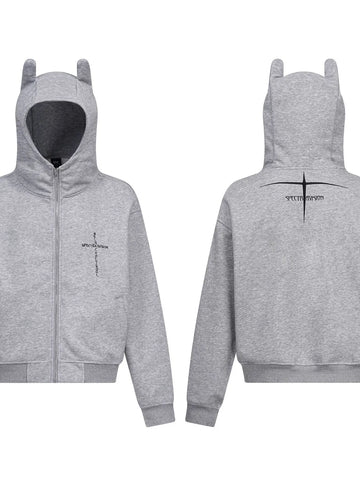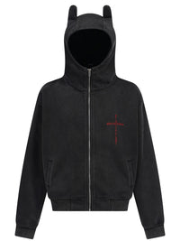 Men's Devil Horn Zip-Up Hoodie - Black / S