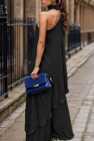 Mock Neck Single Shoulder Top and Pants Set - Black / S