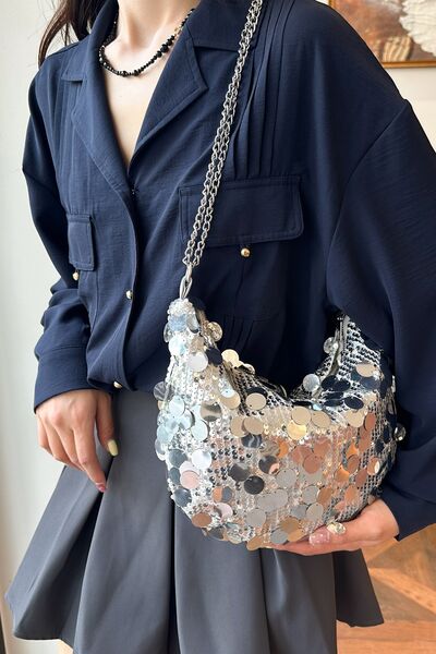 Inform when this item available: Sequin Chain Crossbody Bag - Black / One Size