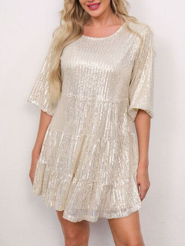 Sequin Round Neck Half Sleeve Mini Dress En solde