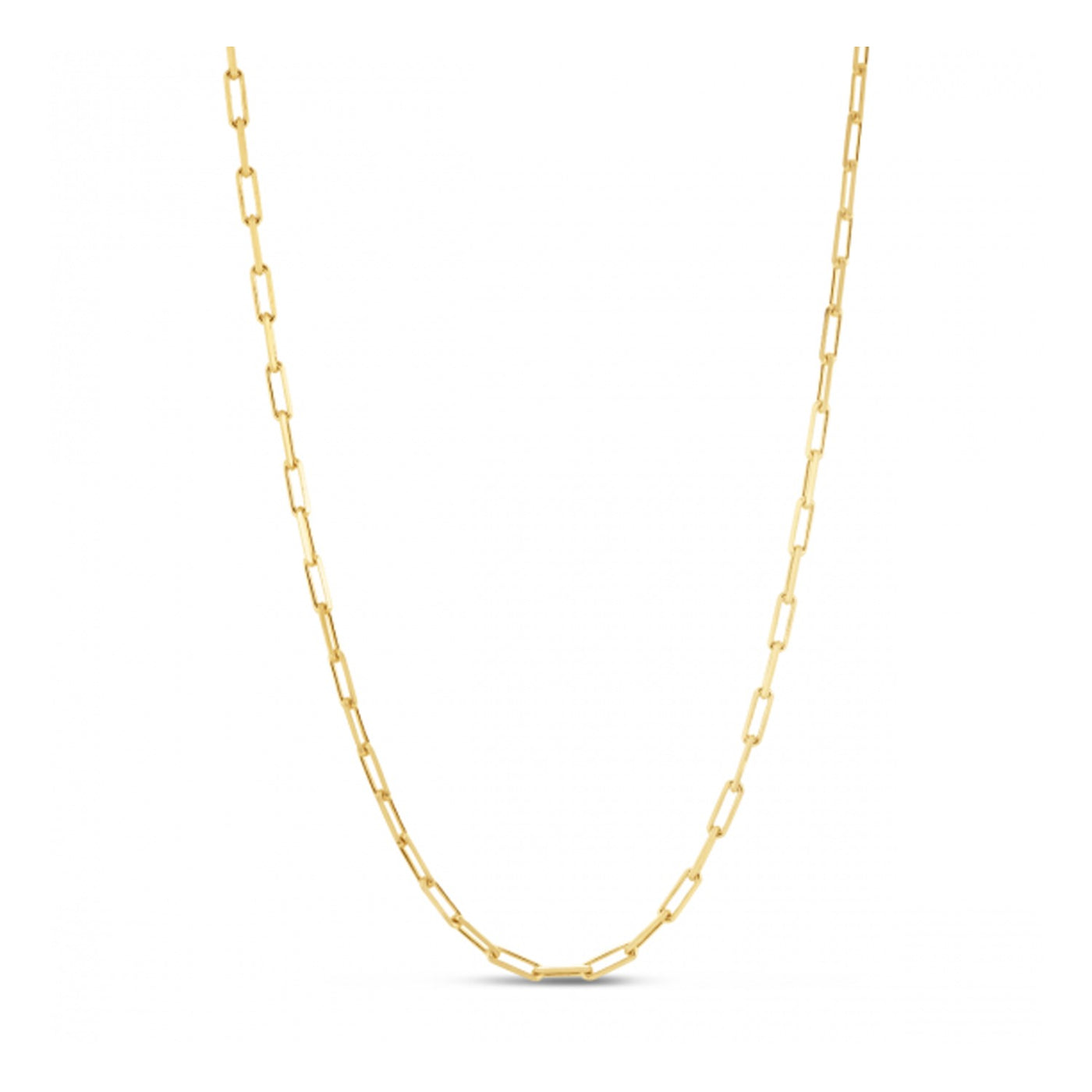 Brilliantly shiny sterling silver links come together to form this contemporary paperclip chain measuring 2.95 mm in width and closes with a lobster clasp. Available in lengths 18, 20 and 24 inches.