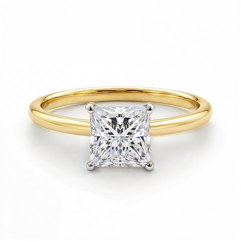 1.50Ct Princess Lab Grown IGI G/VS1 Diamond Ring in 10K Yellow Gold Sale