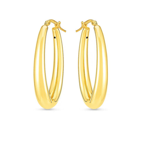 14k Yellow Gold Elongated Oval Hoops - Yellow Gold